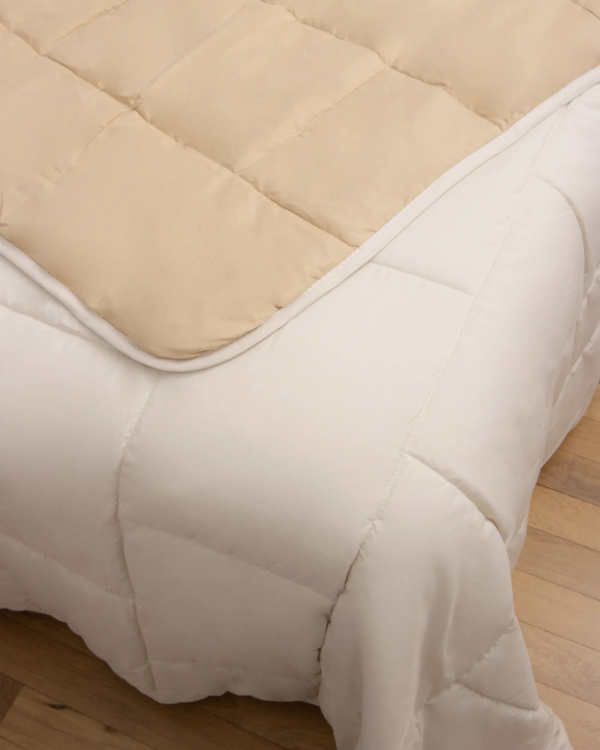Producto Reversible, disponible en colores modernos que armonizan perfectamente. Fabricado con fibra virgen y tejidos de alta calidad, garantizando un tacto suave y una comodidad excepcional.