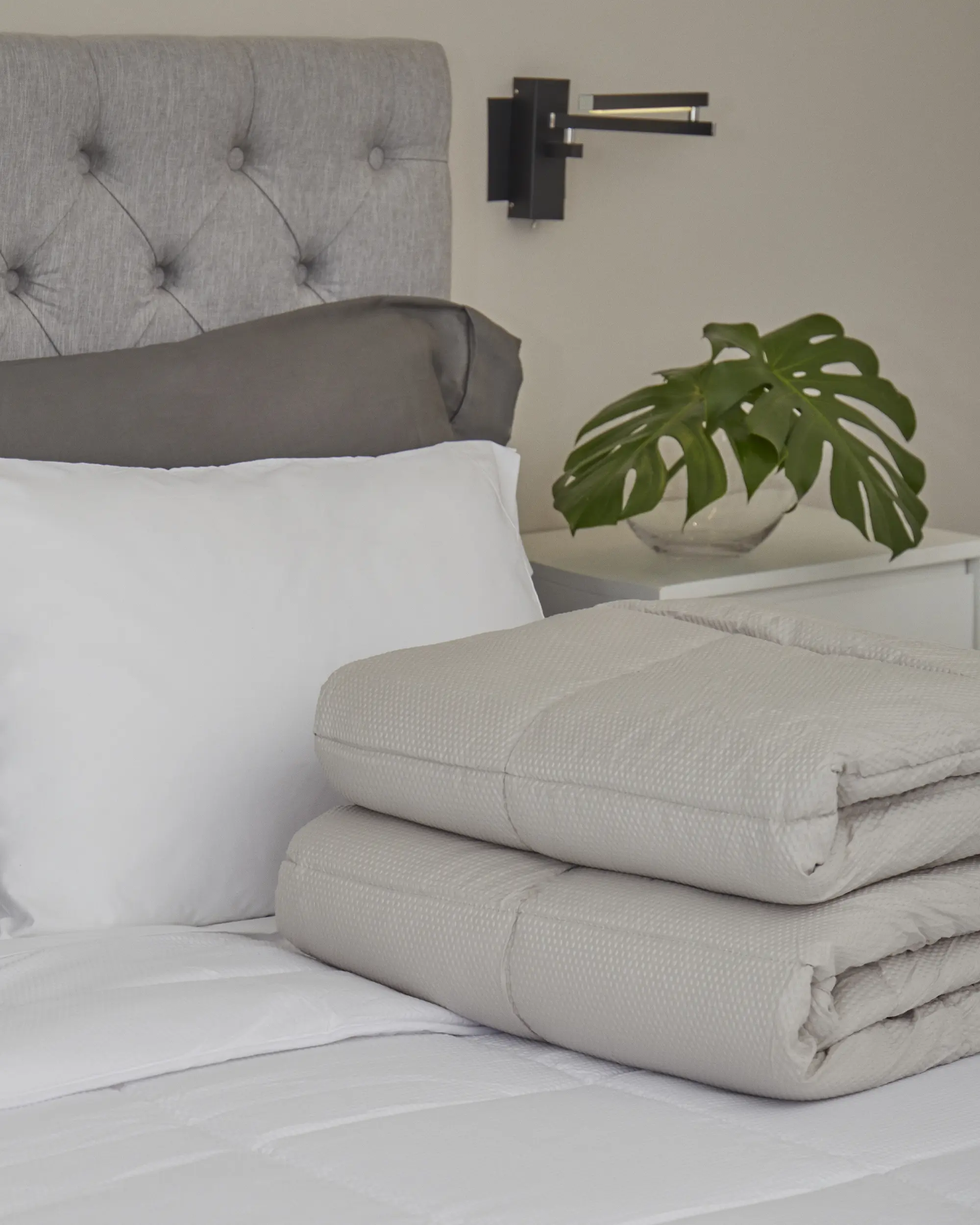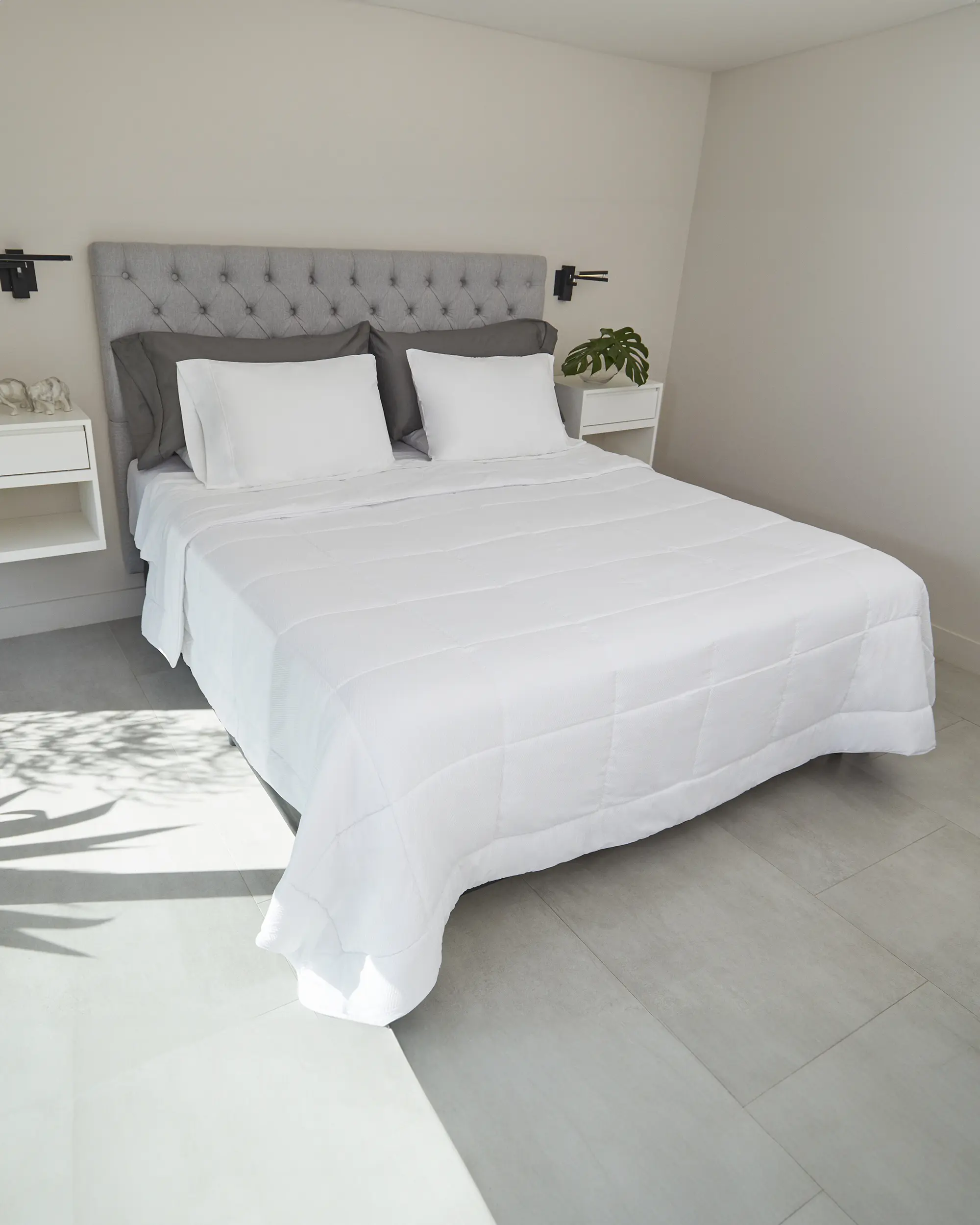 Fabricado con fibra térmica especial que regula la temperatura, una nueva tecnología que ofrece una comodidad excepcional para todas las estaciones del año.